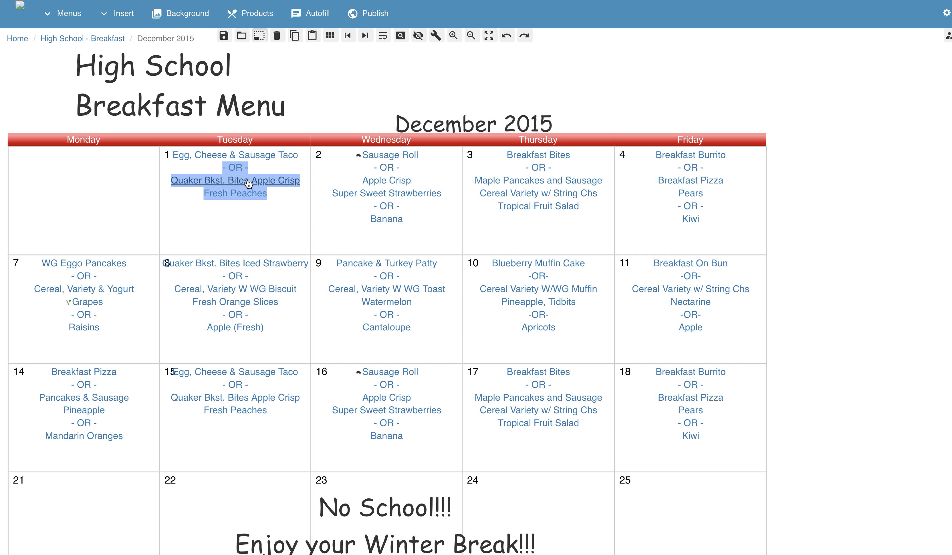 - a drag & drop interactive online calendar menu designer